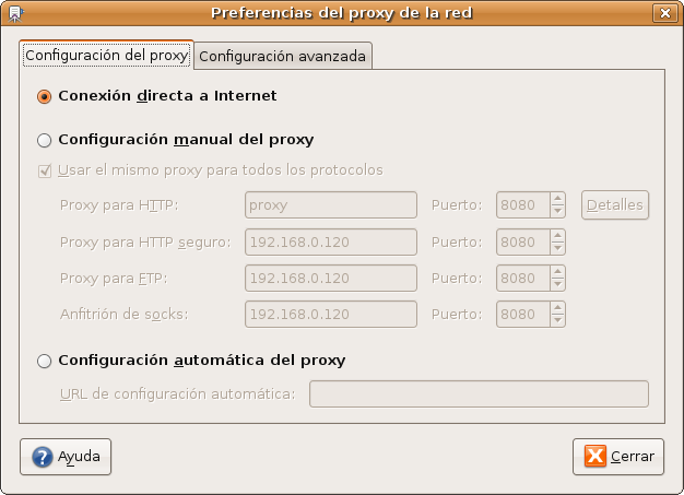 Hace unas horas César envió un mail a un grupo de gente a la que le gusta discutir estas cosas. Él hacía referencia a éste post, en el que habla sobre un tema que habíamos tocado ya en una de nuestras discusiones: los diálogos de GNOME no tienen botón “Aceptar”, ni “Aplicar”, ni “Cancelar”… simplemente un “Cerrar” y listo. Vean, éste es el diálogo para configurar el proxy: