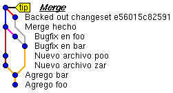 Si me doy cuenta que el changeset 4 (“Bug fix en bar”) es incorrecto, entonces lo deshago con el comando “hg backout”: